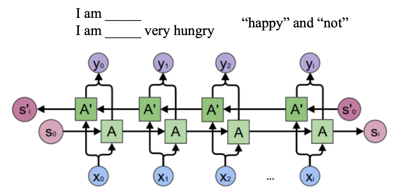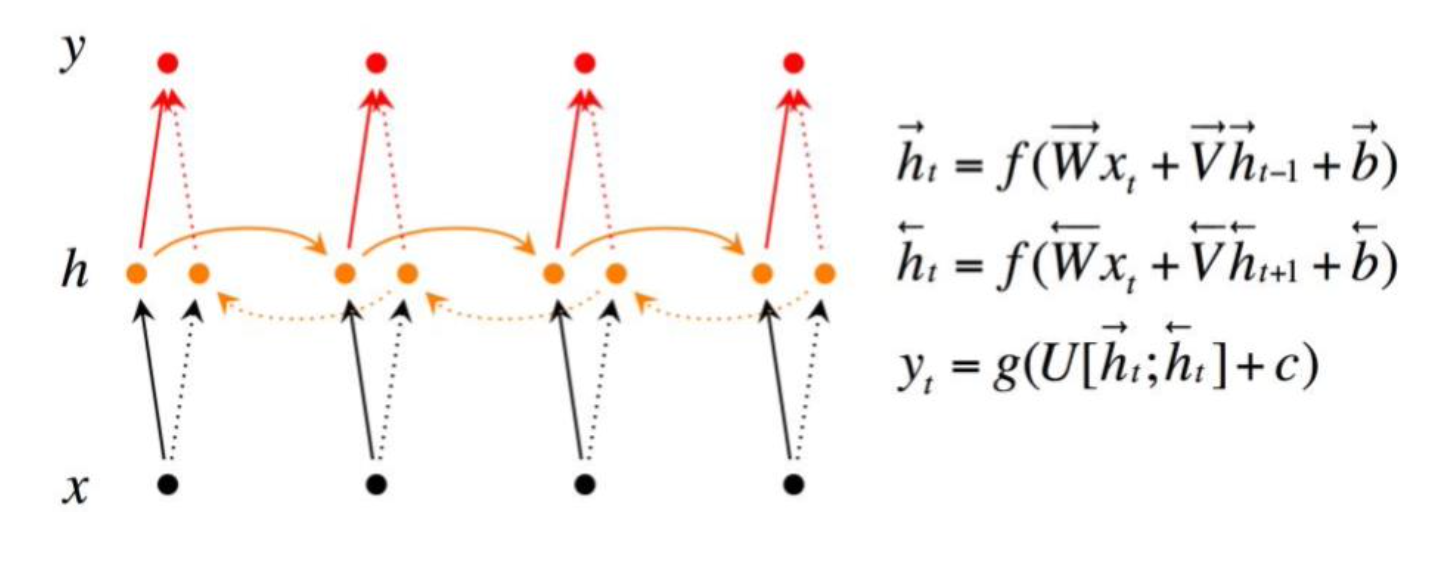 Bi-directional RNN(双向RNN)假设当前t的输出不仅仅和之前的序列有关,并且还与之后的序列有关,例如:完形填空,它由两个RNNs上下叠加在一起组成,输出由这两个RNNs的隐藏层的状态决定。