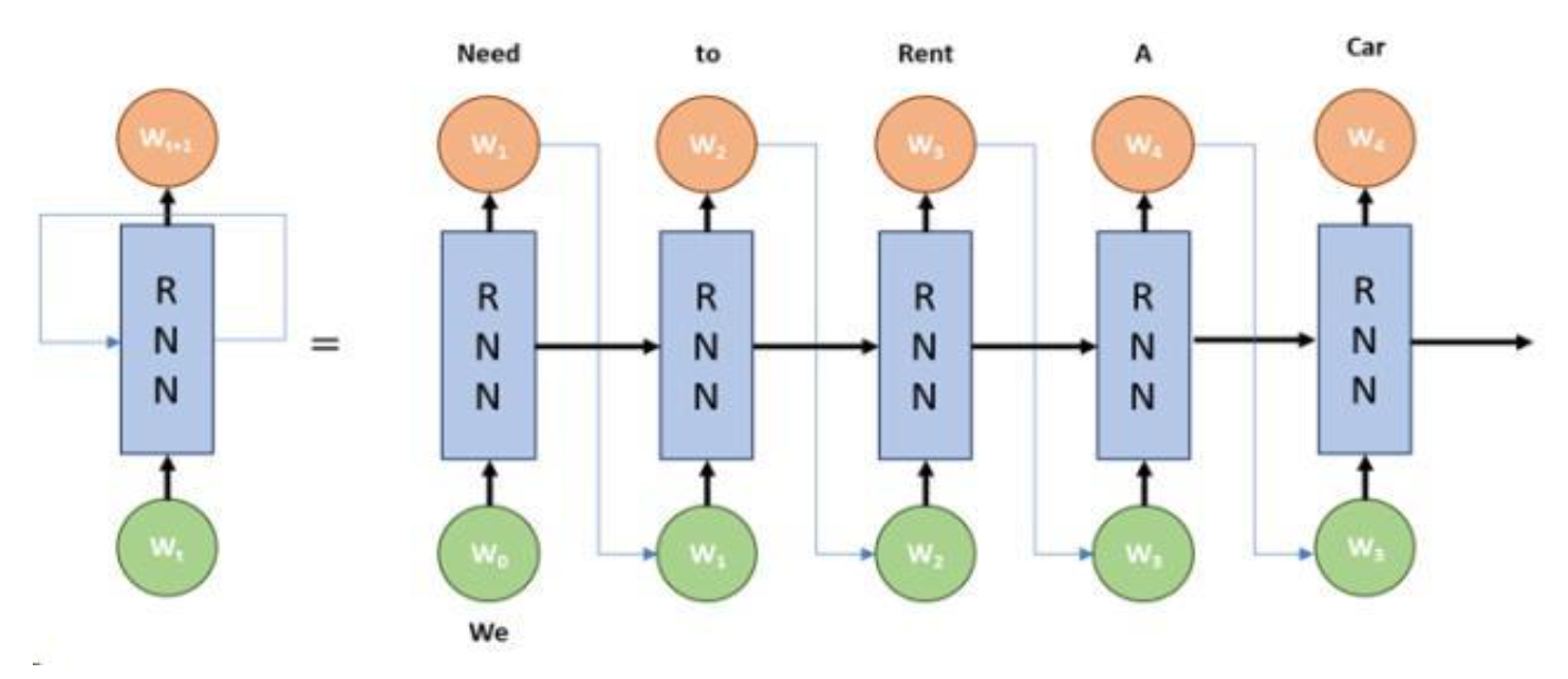 在神经网络图里面,输入到输出要么从左到右,要么从下到上。而循环神经网络通常会采用下到上的形式来展示。
