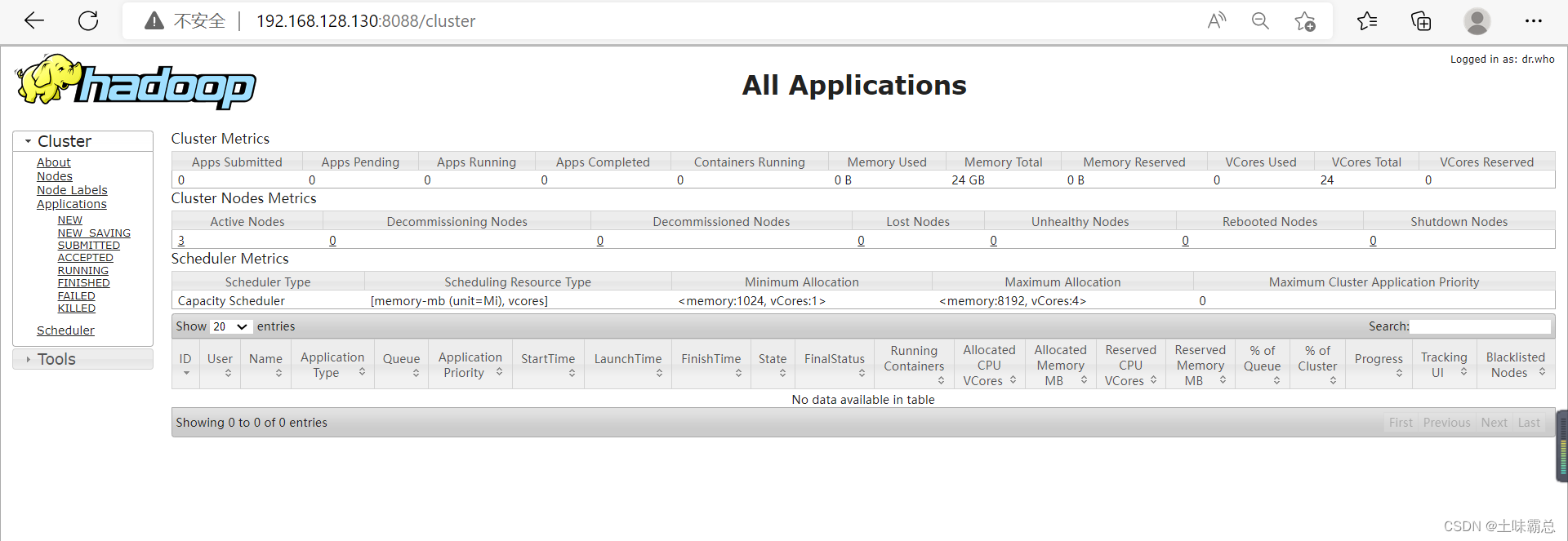 接下来使用下面三个网站可以看到自己操作之后在hadoop上面的改变,其中链接中的ip地址是自己的虚拟机地址,每个人不一定相同。