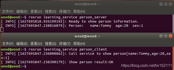 该例程将请求/show_person服务,服务数据类型 learning_service::Person