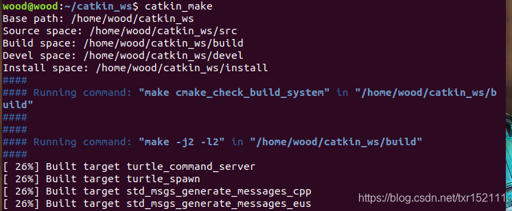 在~/catkin_ws目录下运行终端,输入 catkin_make命令