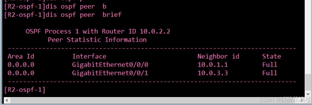 配置完成后,在R2上查看OSPF邻居建立情况。