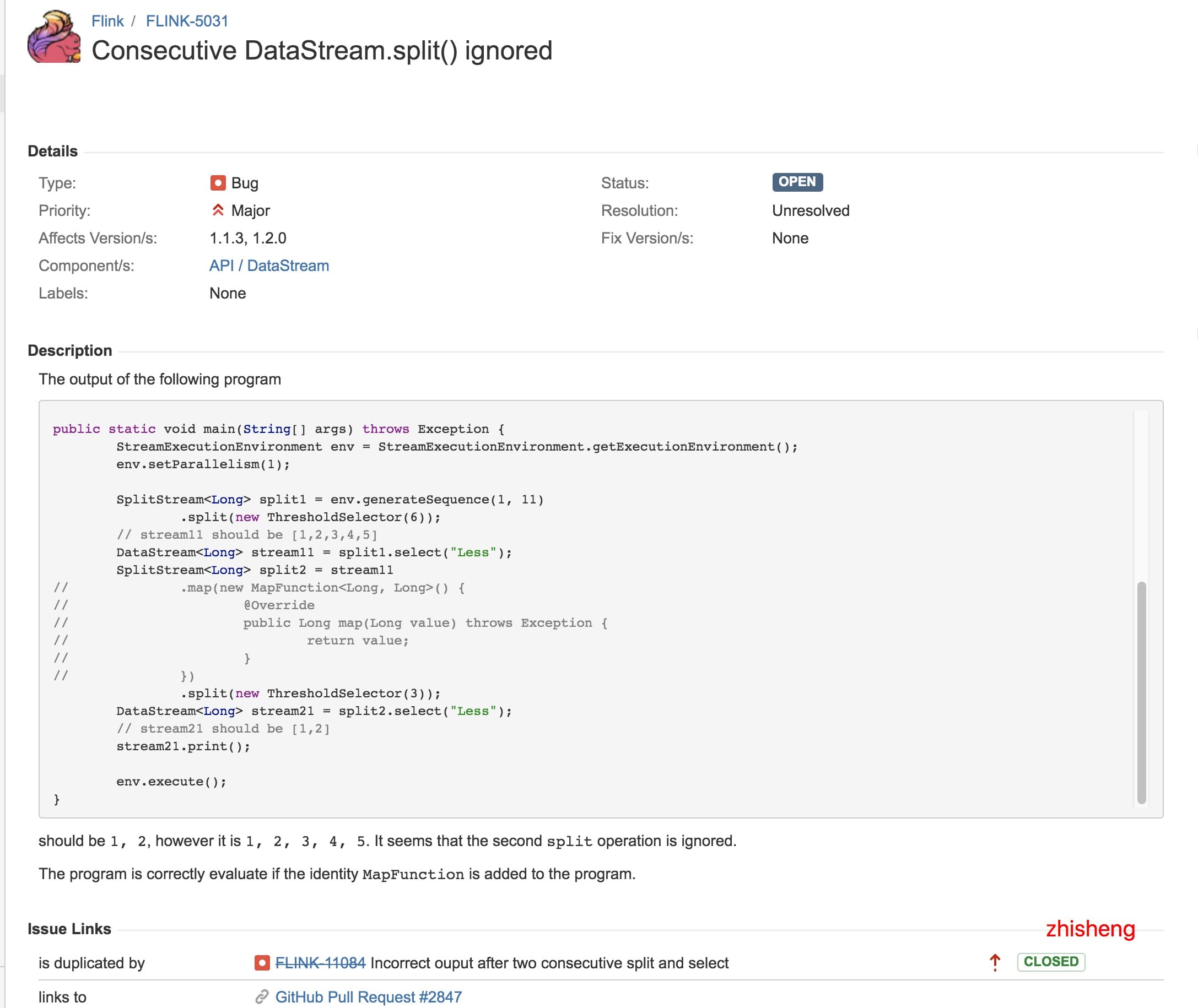 但从这篇文章中,我找到了关联到的两个 Flink Issue,分别是: