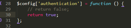 修改ckfinder文件夹下config.php,将29行的return false;改为return true;