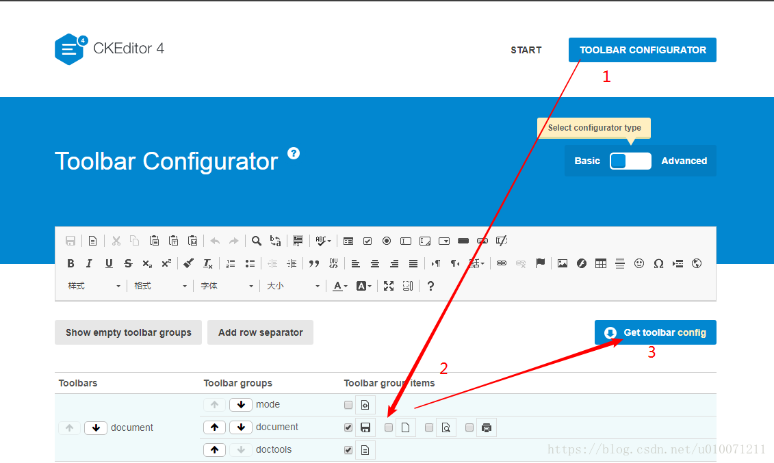 根据你的需求选择自定义工具栏,选好之后点击Get toolbar config,把这个配置代码复制,备用