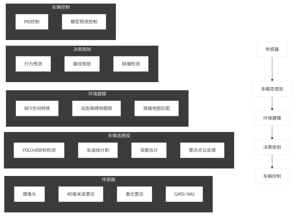 以下是一个完整的 YOLOv8 自动驾驶系统 技术方案,涵盖 感知、预测、规划、控制全栈实现,并提供模块化代码和部署指南。系统设计注重实时性、多传感器融合和嵌入式部署能力。