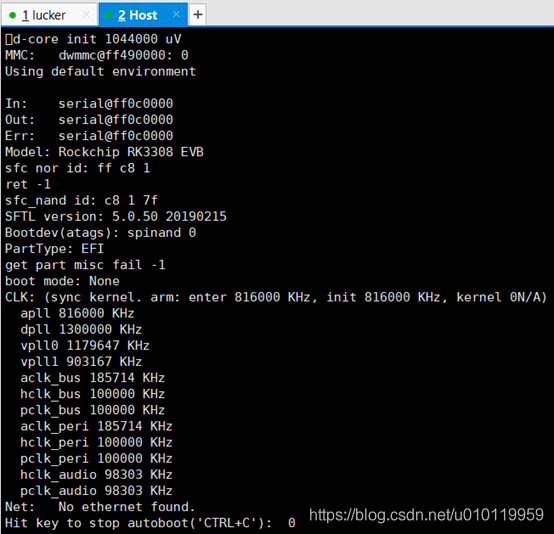 最后给板子上电,可以看到串口的UBoot日志输出: