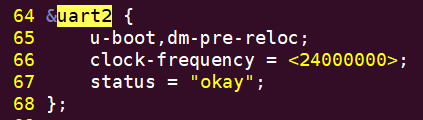 需要注意的是,serial驱动在加载的时候需要依赖clk驱动,如果在这个时候clk驱动还没有正常加载,需要在对应uart的dts节点中加入clock-frequency属性,同样在该dts文件中可以找到uart2描述:
