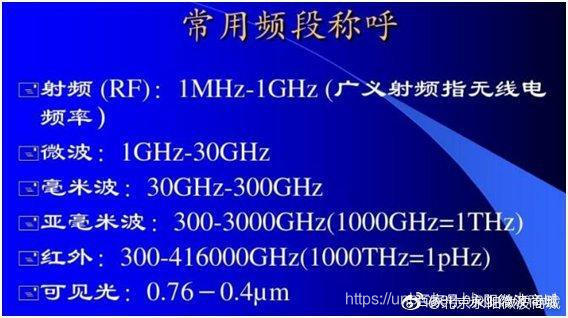 微波是指频率为300MHz~300GHz的电磁波,是无线电波中一个有限频带的简称,即波长在1毫米~1米之间