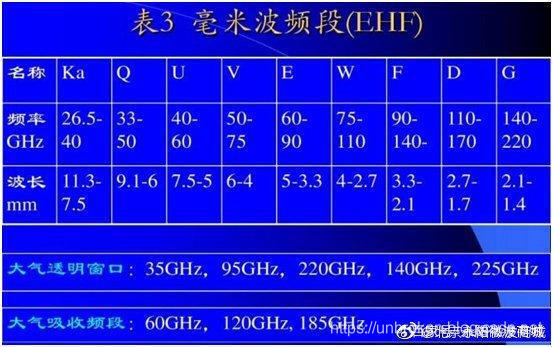 毫米波 (millimeter wave ):波长为1~10毫米的电磁波称毫米波,它位于微波与远红外波相交叠的