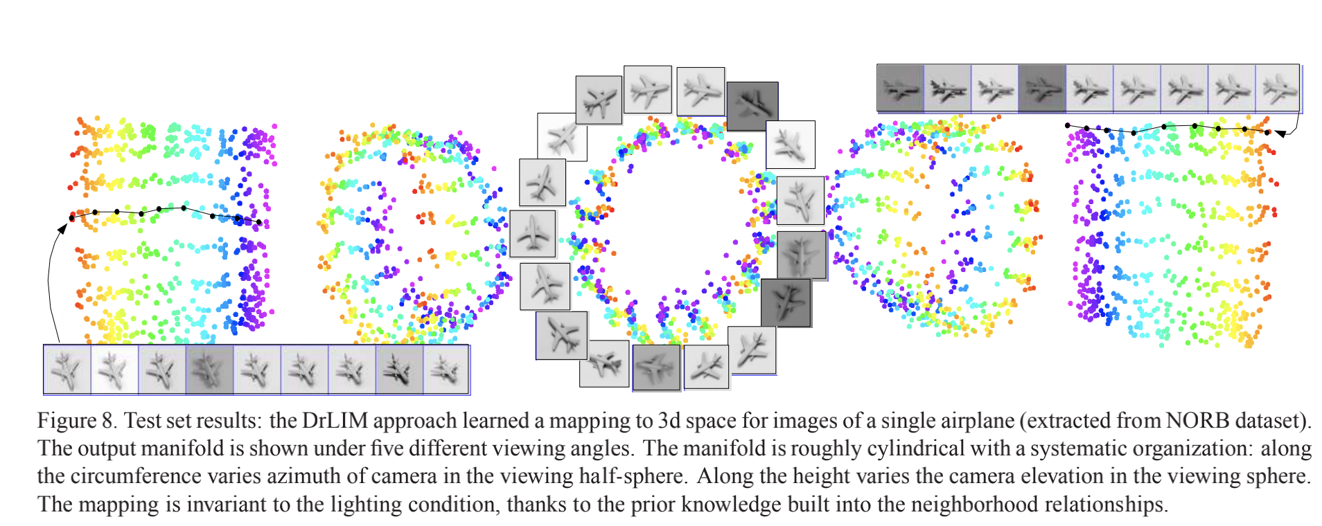 这里采用siamese结构,使用 Contrastive Loss设计了实验的模型结构,做了3组实验,佐证了DrLIM的优点。