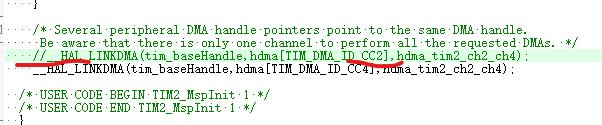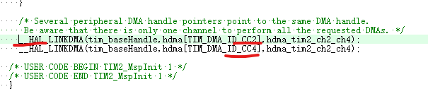 两个通道全部启动了,其实我只需要CH4,看上面绿色的说明,DMA通道同时只能给提个TIM通道使用。