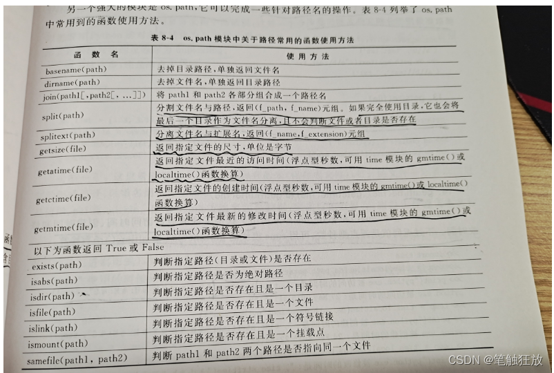 | listdir(path=".") | 列举指定目录中的文件名("."表示当期那目录,".."表示上一级目录) |