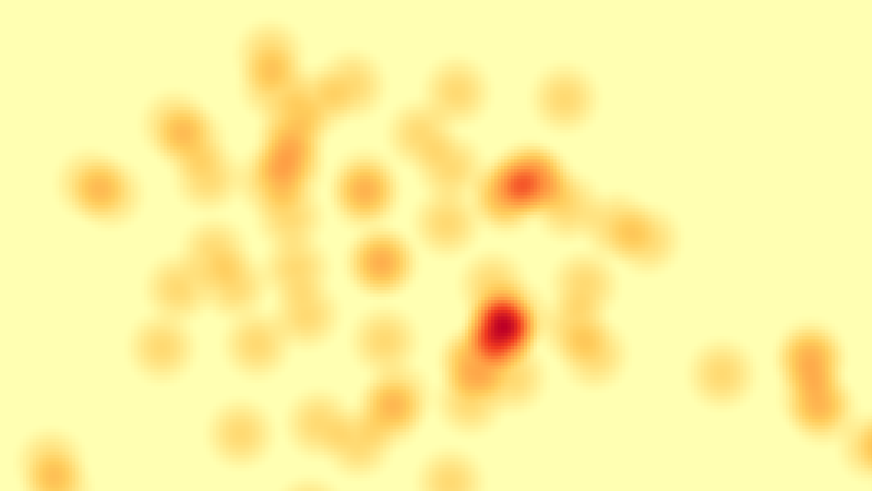 上面这个图是我用 QGIS 示例数据“airports.shp”生成的,使用“黄色->红色”的彩色条带展示数据点密度,红色区域为数据点最为密级的区域。