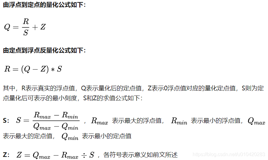 比如进行int8的量化,数据范围是[-128,127],最大值最小值分别是Xmax, Xmin,X_q表示量化后的数据,X_f表示浮点数据。
