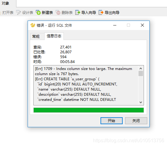 导入数据库的时候报Specified key was too long; max key length is 767 bytes