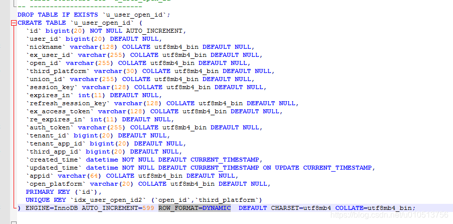 - 启用innodb_large_prefix必须同时指定innodb_file_format=barracuda,innodb_file_per_table=true,并且建表的时候指定表的row_format为dynamic或者compressed(mysql 5.6中row_format默认值为compact)