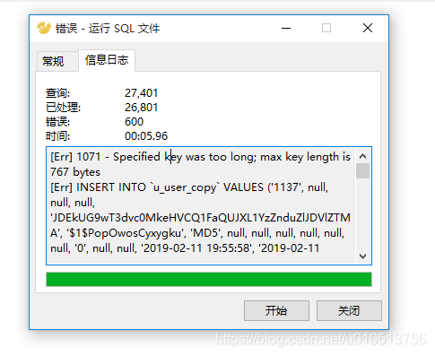 这样操作后在去执行导入数据的操作时错误内容变为了