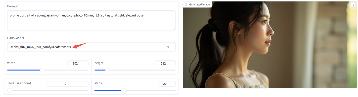 generate_button.click(fn=generate, inputs=[positive_prompt, width, height, seed, steps, sampler_name, scheduler, guidance, lora_strength_model, lora_strength_clip, loras], outputs=output_image)