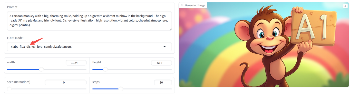 环境和模型准备好之后,我们可以编写代码,首先本地测试下加载 LoRA 模型的生成效果: