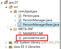 在创建完成之后,自动在META-INF目录下添加了persistence.xml文件,