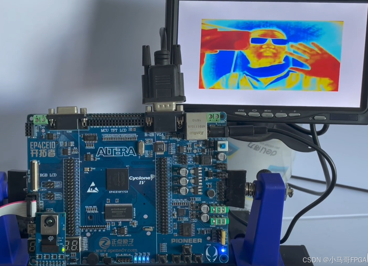 将灰度图像转换成菜色图像,该模块实际上就是个映射表,将某一灰度映射为对应的彩色数据,输入灰度为8bits、彩色数据采用RGB888格式,使用RAM保存映射映射表、用初始化文件初始化RAM的值(实际上是把RAM当ROM使用了)。