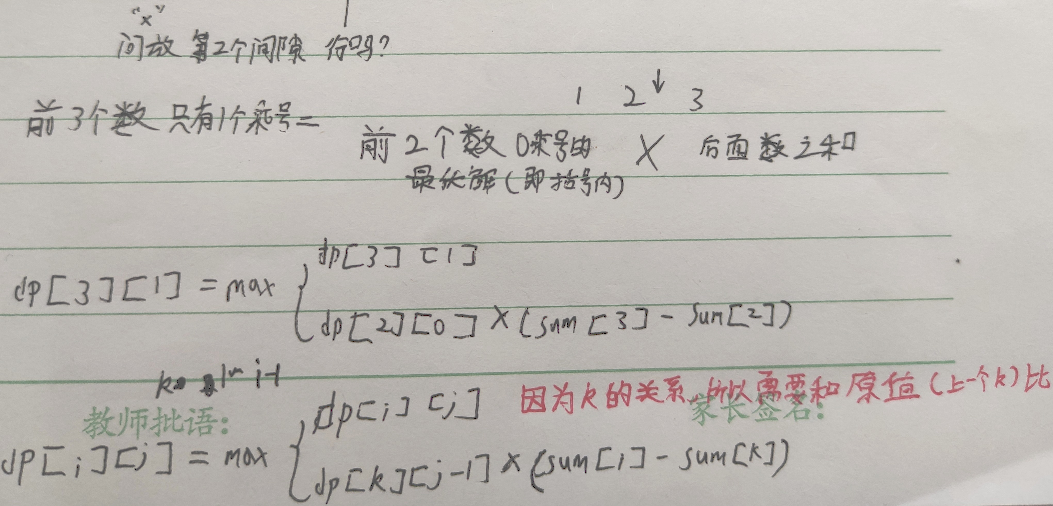 dp[i][j]=max(dp[i][j],dp[k][j-1]*(sum[i]-sum[k]) );