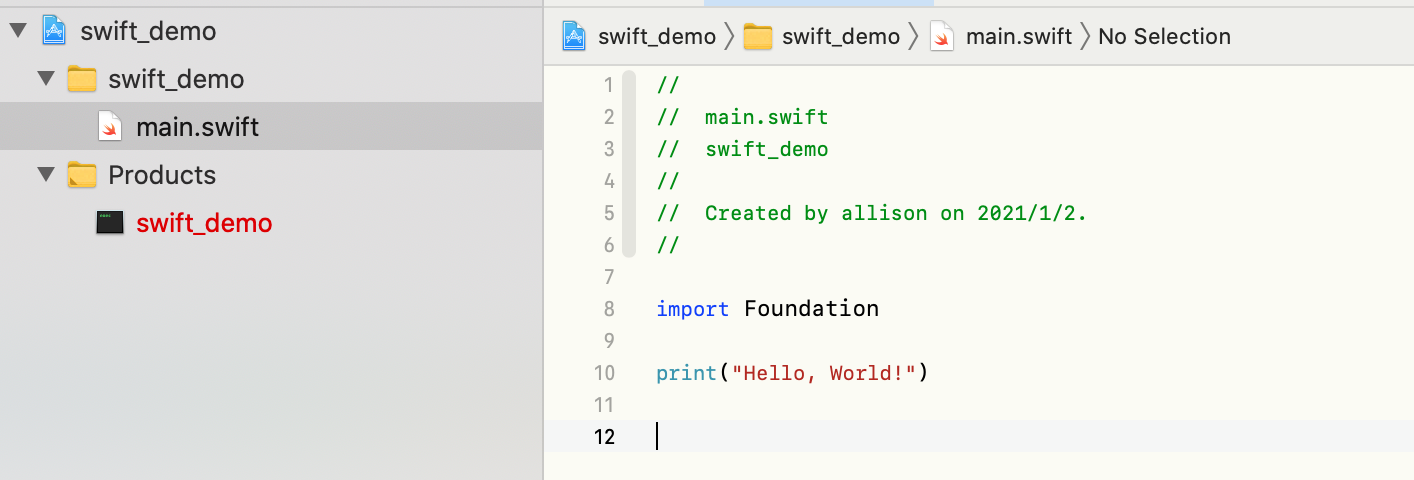 现在我们新建一个swift 5 的 Command Line Tool 命令行项目,发现main入口类只有一个 print("Hello, World!")