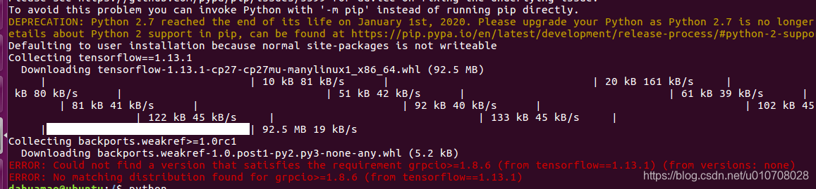 ERROR: No matching distribution found for grpcio>=1.8.6 (from tensorflow==1.13.1)