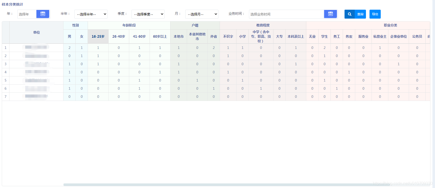本文介绍了在开发后台管理系统中,如何处理数据网格的复杂需求,如单元格合并、多列页眉、冻结列和页脚。通过HTML和JavaScript实现基本的表格展示,并展示了如何处理更复杂的统计报表需求,包括表头跨行跨列和首列冻结。同时,针对数据行特征类型相同的行进行跨行合并的问题进行了讨论,分享了一种尝试但存在样式错误的方法,期待解决方案。