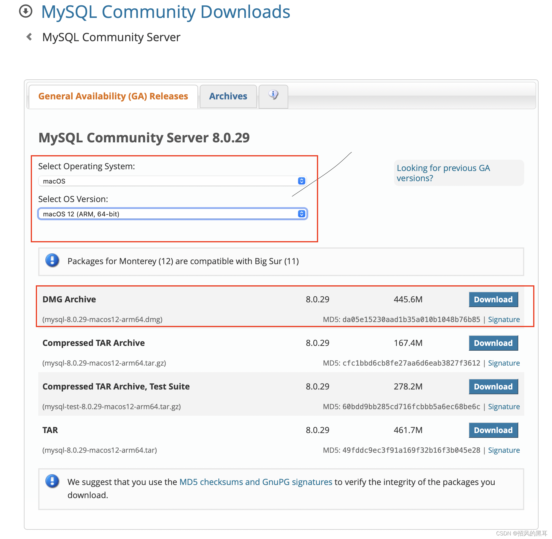 4、选择macOS 12(ARM,64-bit),选DMG Archive 下载,选RAM架构的看清楚哦!!
