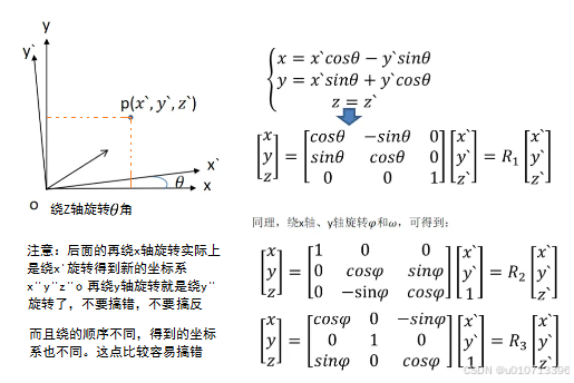令:R = R1 * R2 * R3、世界坐标系为[X,Y,Z]w,相机坐标系为[X,Y,X]c