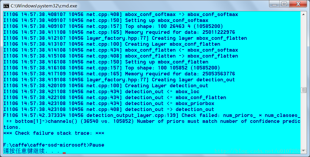 1,报错Check failed: num_priors_ * num_classes_ == bottom[1]->channels() (36540