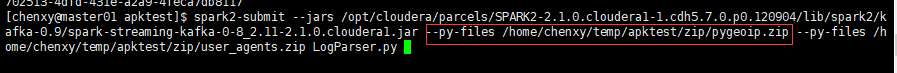 第三步:命令使用--py-files引用zip文件