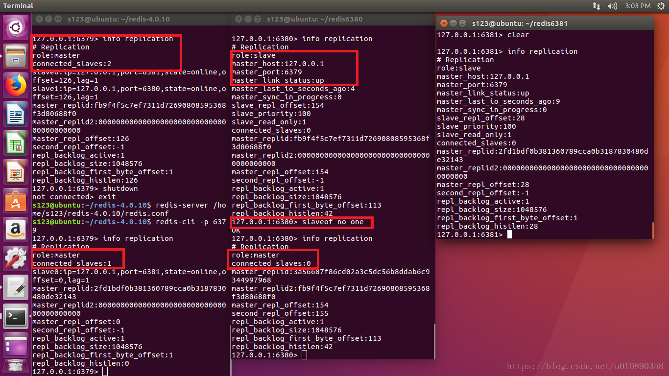 正如前面所说的,当Master挂掉的时候,Slave就会进入等待状态,而如果Master一直无法重启的话那么Slave就会一直等待。这时可以通过命令slaveof no one来让其中一台Slave成为Master(6380)继续工作。如果没有指定的话(例如6381)就一直等待,直到Master恢复。