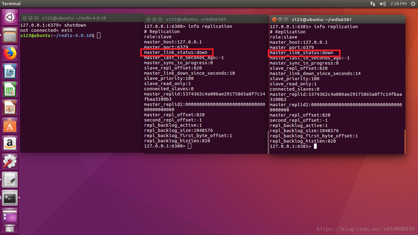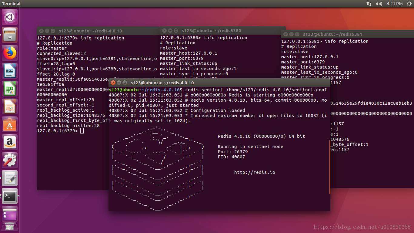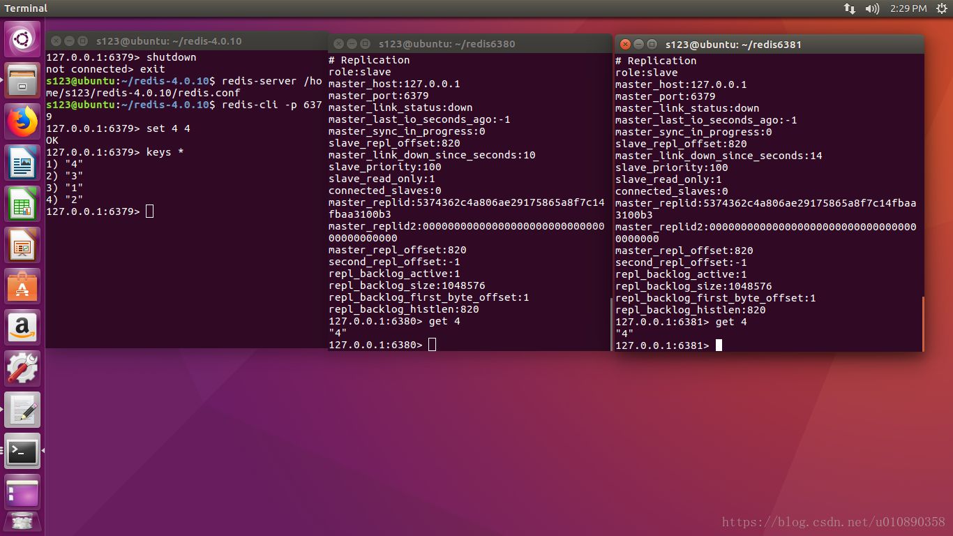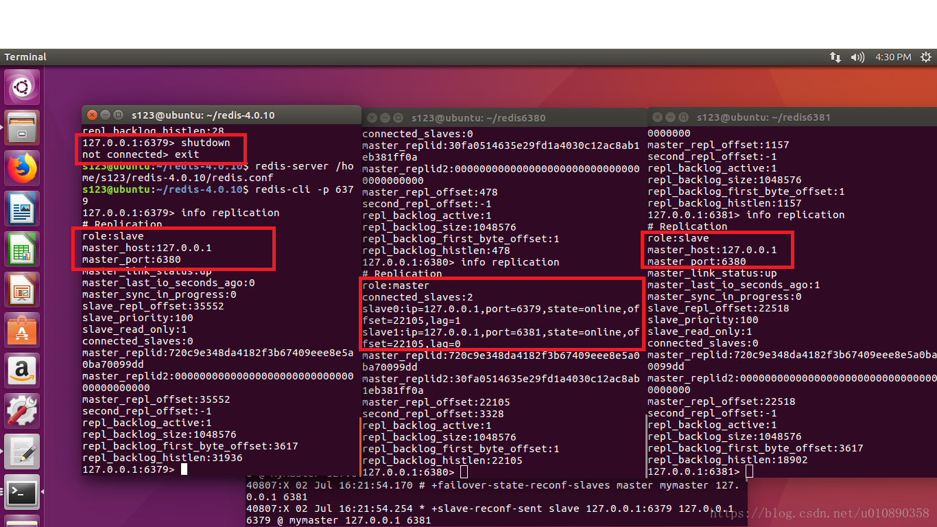 当把6379服务器关闭掉之后,Sentinel会发现主服务器已经失效紧接着通过投票产生一个新的主服务器。可以看到6380变成了新的主服务器,而旧的主服务器则变成了它的从服务器。