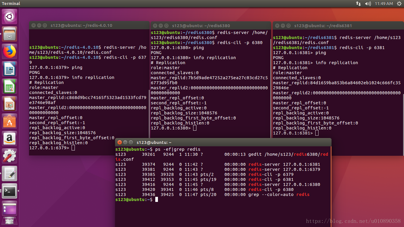 开启6379,6380,6381三个Redis进程,并且通过info replication可以看到当前三个进程都是独立的,它们都是Master: