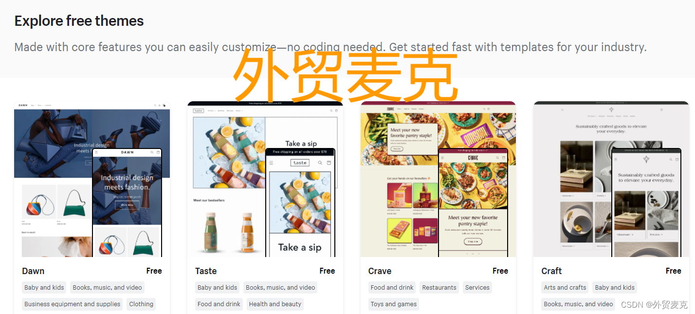 最新的Shopify官方免费模板列表链接: