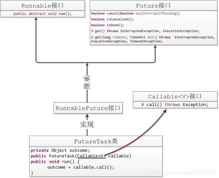 FutureTask(Runnable runnable, V result):创建一个FutureTask,它将在运行时执行给定的Runnable,并安排get在成功完成时返回给定的结果。