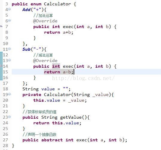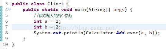 看这个场景类,代码量非常少,而且有一个显著的有点:真实地面向对象,看看这条语句:Calculator.Add.exec(a, b),是不是类似于“拿出计算器(Calculatro)”,对a和b进行加法操作(Add),并立刻执行(exec)。