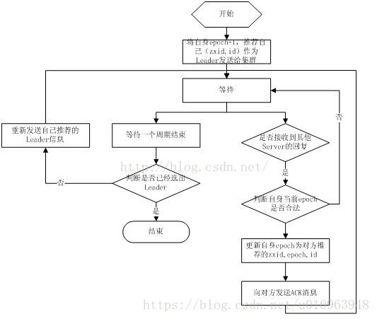 (1)选举线程由当前Server发起选举的线程担任,其主要功能是对投票结果进行统计,并选出推荐的Server;