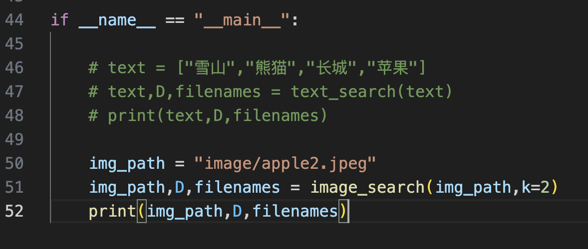 D, I = index.search(text_features, k) # 实际的查询