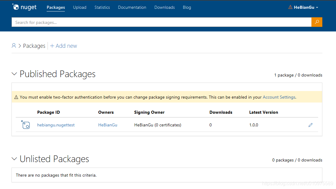 1、创建的 hebiangu.nugettest.1.0.0 名称不能和服务器上已有的包名重复,否则会报403错误,检查方式是到nuget上搜索一下有没有该名称的包
