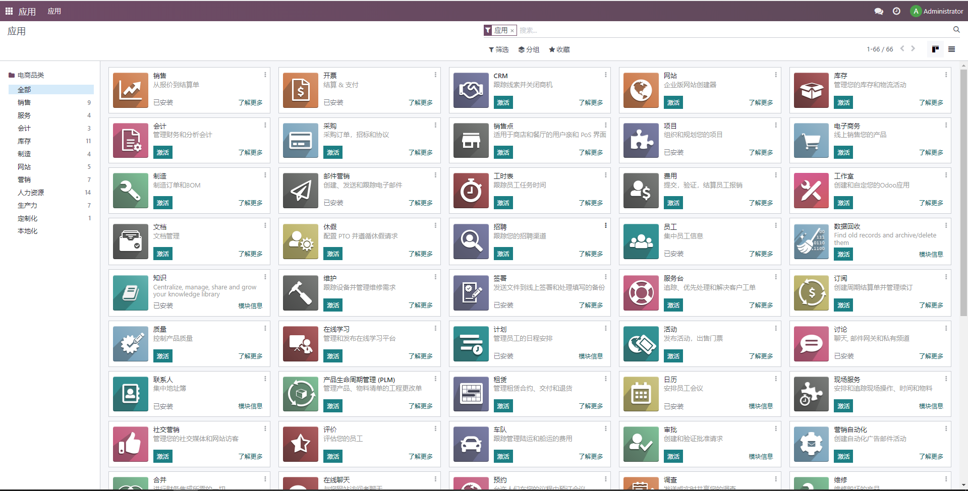 6.要部署企业版的,就去路径/usr/lib/python3/dist-packages 把里面的odoo文件夹改名,或者删除,然后把企业版源码粘贴进去,重启odoo服务或者重启服务器,然后退出社区版登录,点管理数据库新建数据库就是企业版的了,也可以直接http://ip:8069/web/database/manager直接新建数据库。其他的很多功能也有不错的亮点,比如筛选框、冻结表头等,最后在技术层面也是做了不少的优化,大大提高启动速度,日常应用响应速度。