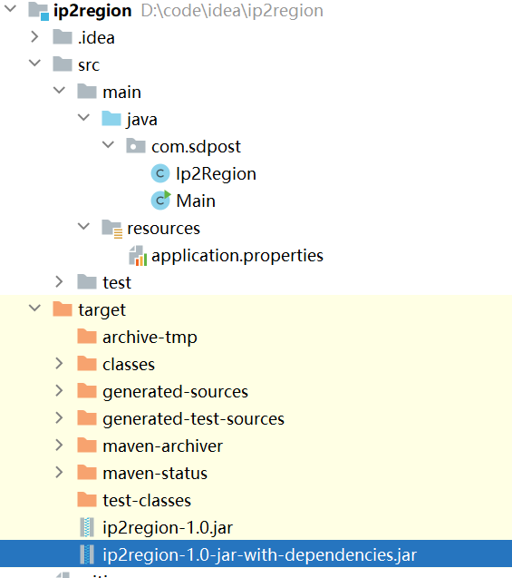 编译打包,生成ip2region-1.0-jar-with-dependencies.jar