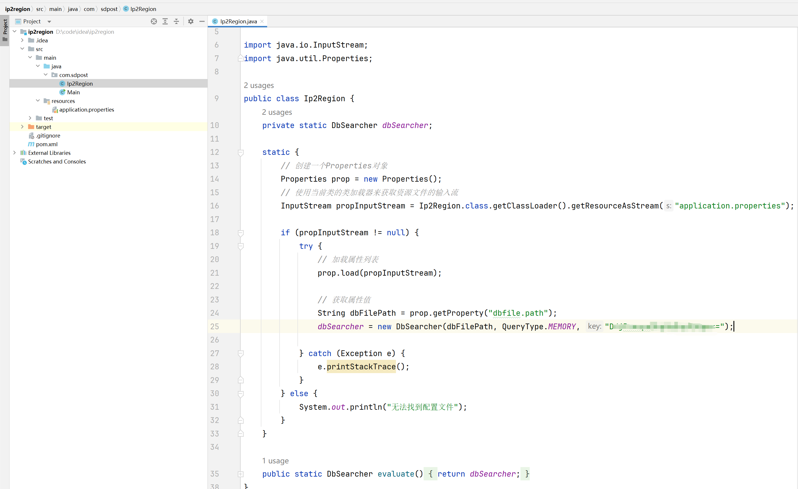 InputStream propInputStream = Ip2Region.class.getClassLoader().getResourceAsStream("application.properties");