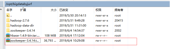 hadoop-2.7.6 hadoop-data-dir hbase-1.4.9 hbase-1.4.9-bin.tar.gz zookeeper-3.4.14 zookeeper-3.4.14.tar.gz