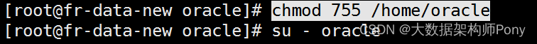 给755权限:chmod 755 /home/oracle,再切换到oracle用户,即可成功!