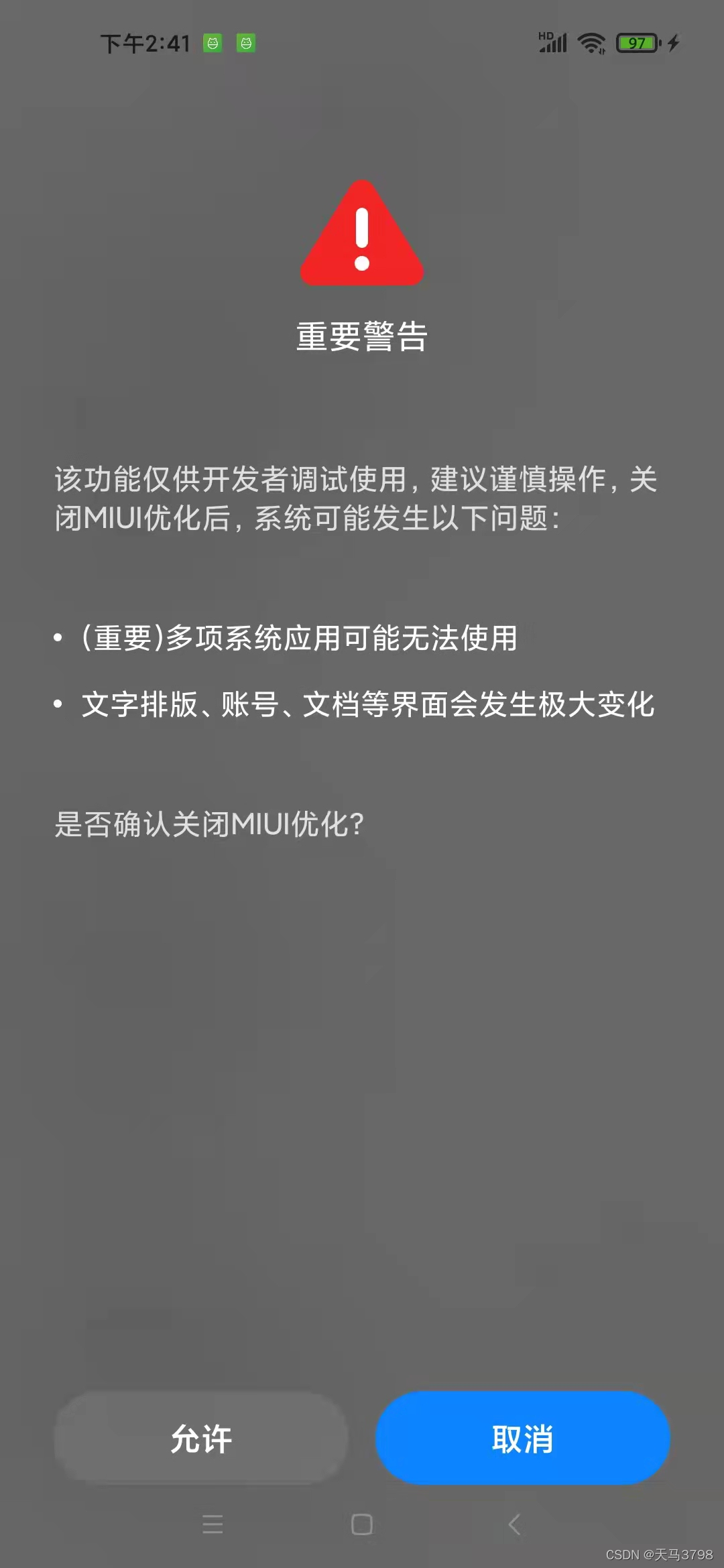 一、App开发的时候真机启动调试,小米经常弹出“USB安装提示”