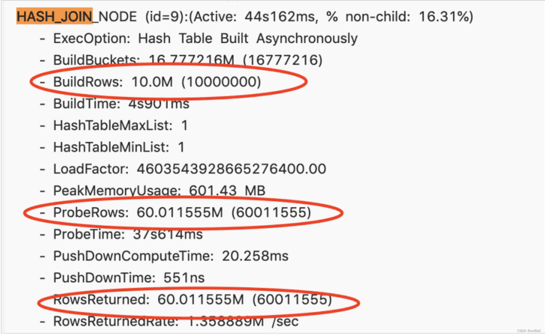 存在一个慢查询,查看 Profile 之后,整个 Join 节点耗时大概44秒。它的右表有 1000 万,左表有 6000 万,最终返回的结果也只有 6000 万。
